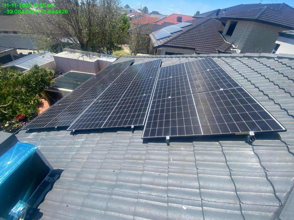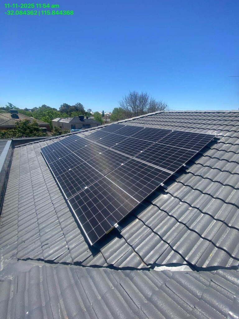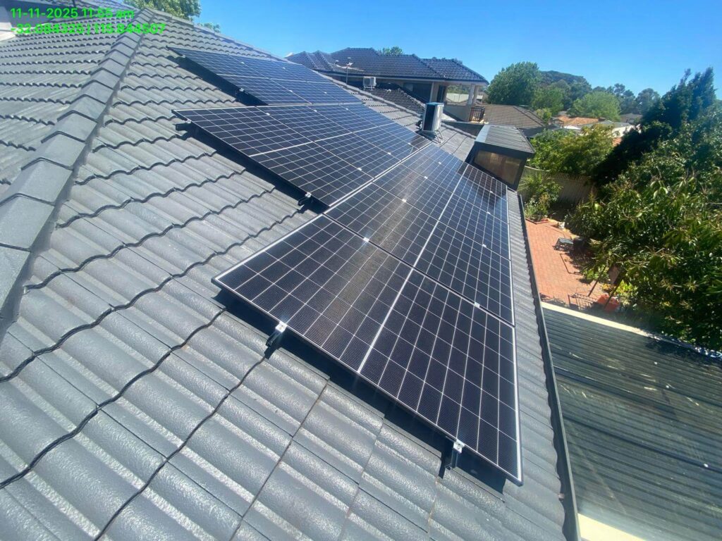 On the roof, the new 9.69 kW solar array was installed across multiple tiled roof sections. Panel placement was selected to capture consistent sunlight through the day and maximise generation for battery charging and daytime household loads.