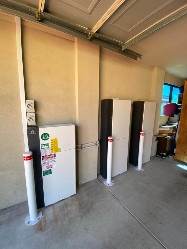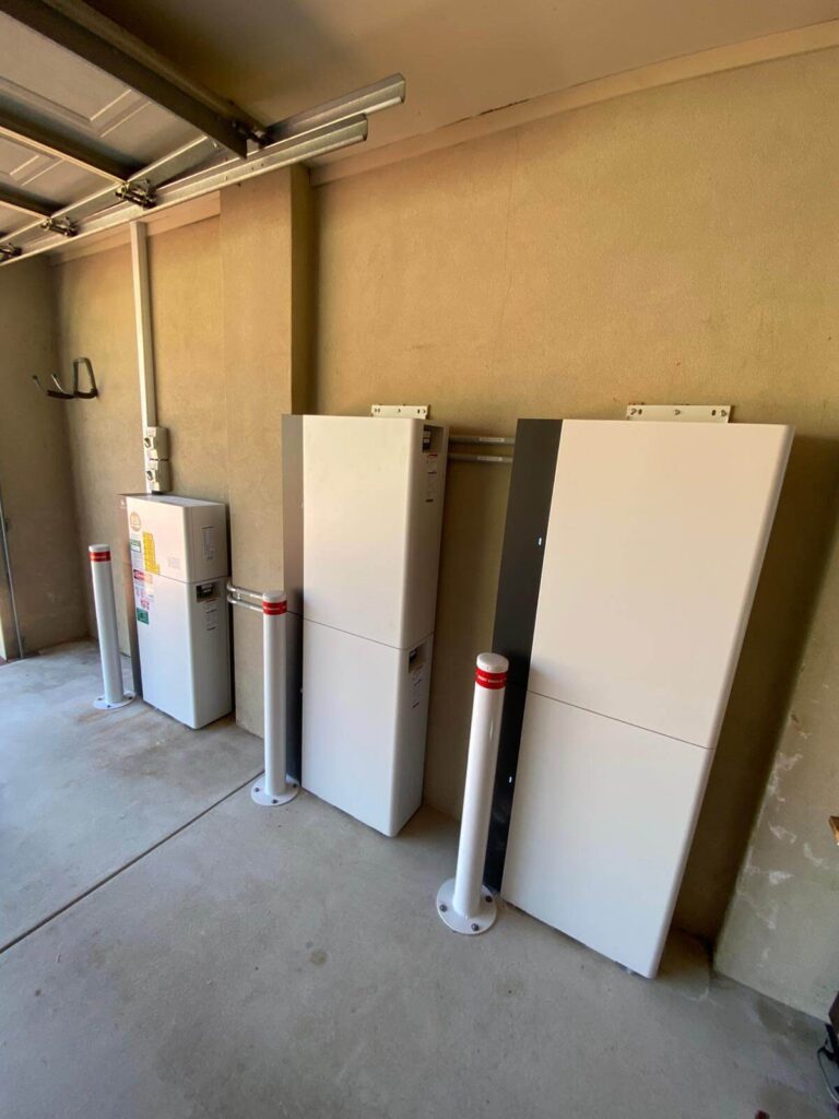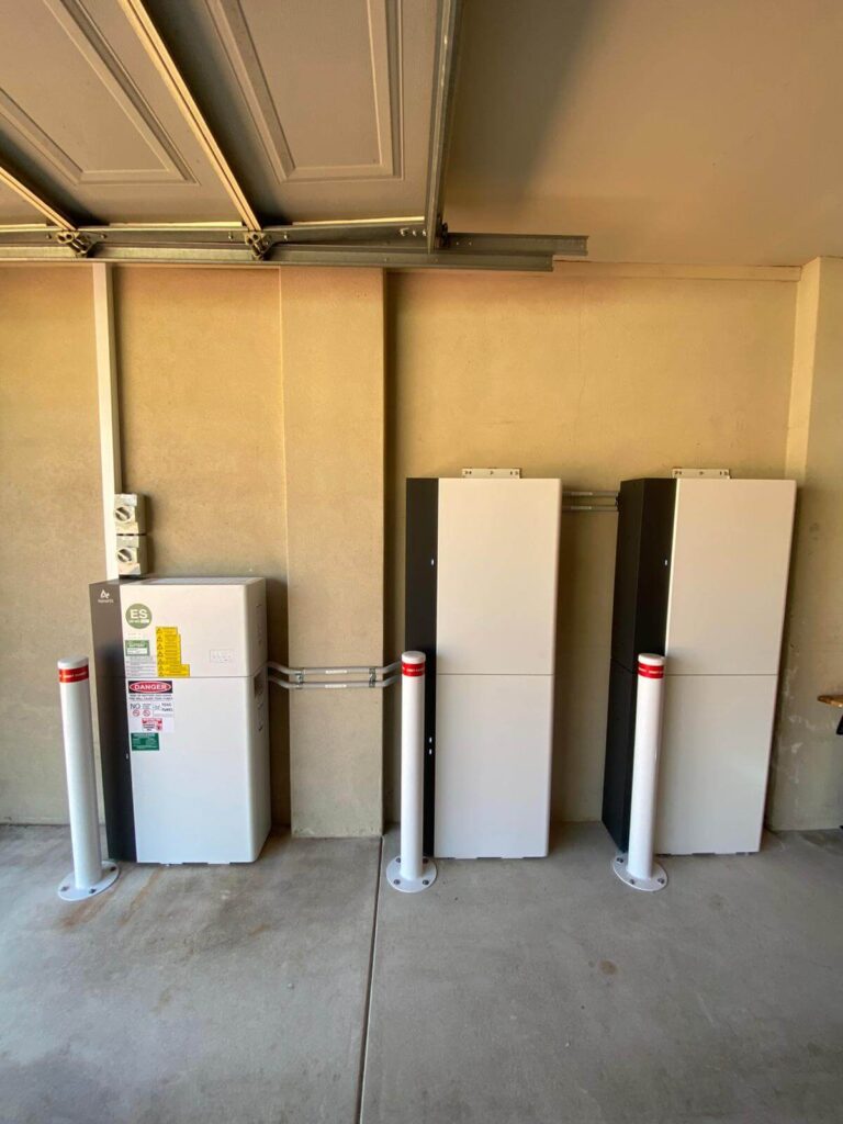 The battery cabinets were arranged neatly along the garage wall with proper spacing to support cooling and ongoing maintenance access. All conduit was run cleanly and secured to maintain a professional, compliant finish.