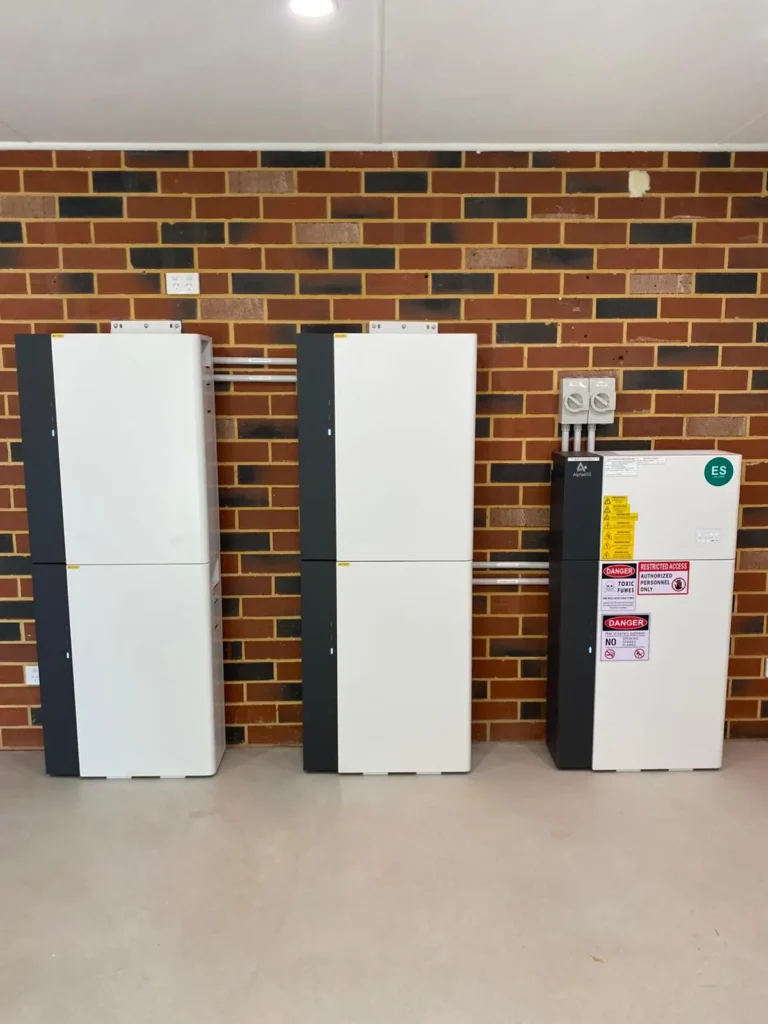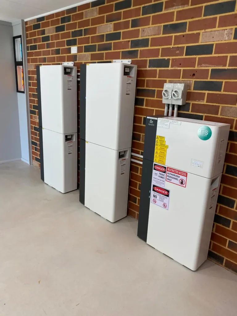 The battery units were installed neatly along the internal wall, with clear spacing for ventilation and safe access. All cabling and conduits were run cleanly and securely, resulting in a tidy installation that complies with current electrical and safety standards.