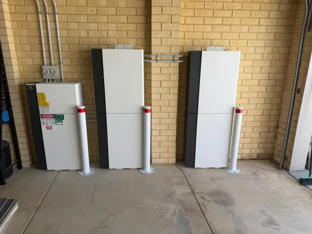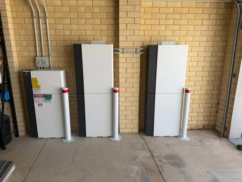 The battery units were installed in a protected and well-ventilated location, with safety bollards added to prevent accidental damage. The layout ensures easy access for maintenance while keeping the installation tidy and compliant.